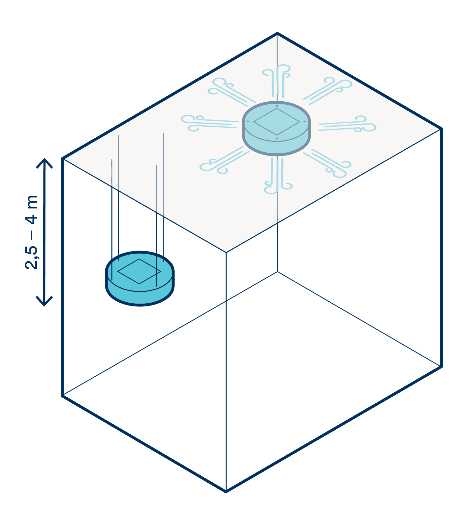Mit dem KaDius präsentiert Kampmann ein innovatives Deckengerät, das neue Maßstäbe bei der Integration von Klimatechnik und Raumgestaltung setzt. Das Gerät vereint modernste Heiz- und Kühltechnologie mit maximaler Gestaltungfreiheit: Dank einzigartiger Konstruktion wird die Raumluft an der Oberseite angesaugt, sodass die Außenhülle komplett individuell – etwa mit Dekoren, verschiedenen Materialien oder Lichtelementen – gestaltet werden kann. Besonders Innenarchitektinnen und Architekten greifen gern auf die große Farb- und Designauswahl zurück, um den KaDius optimal in ihr Raumkonzept einzubinden.